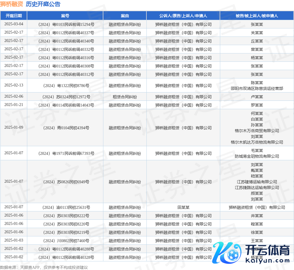 本站音问九游体育娱乐网,把柄天眼查APP走漏,近日公布了一则狮桥融资租出(中国)有限公司看成原告/上诉东谈主的开庭公告,详备骨子如下: