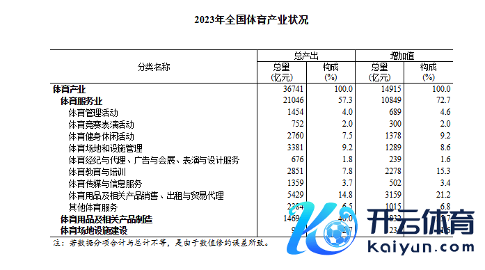 12月31日,国度统计局发布2023年宇宙体育产业总规模与增多值数据,经核算,2023年宇宙体育产业总规模(总产出)为36741亿元,增多值为14915亿元,占国内坐褥总值(GDP)的比重为1.15%,比上年擢升0.07个百分点。