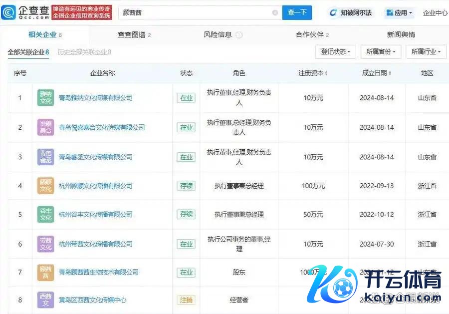 还有,她的名下关联着8家公司,触及文化传播、生物科技等多个领域,生意形态非常普遍。