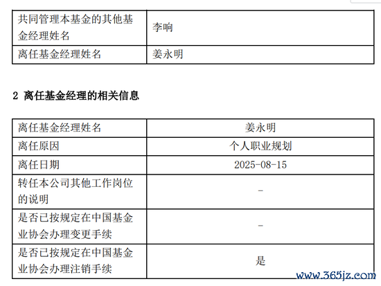 8月16日,财通资管再有基金司理去职。字据公告,财通资管基金司理姜永明一刹清仓式卸任统统在管居品,选择去职,而去职原因则是个东说念主办事臆测打算。